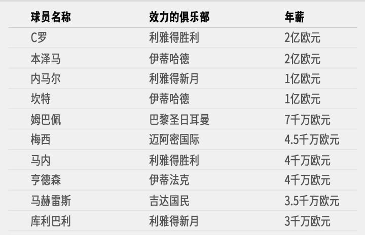 足球明星的天堂:世界上收入最高的10位球员中8位来自沙特