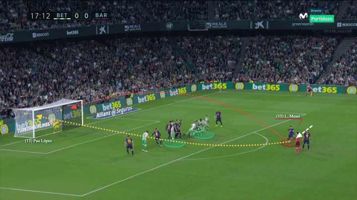 当然,梅西的任意球破门,也离不开队友们的帮助。队友们总是会出现在人墙中,或在禁区内堆出第二道人墙,用于干扰门将的视线,为梅西的起脚提供导航。