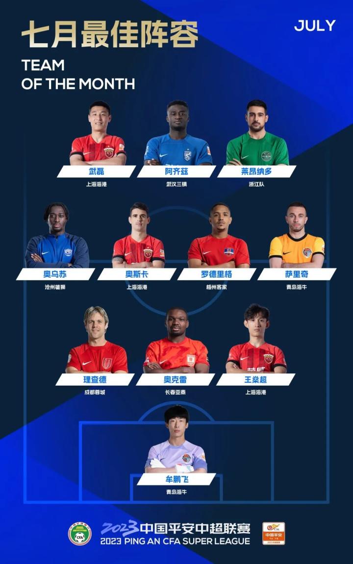 中超官方7月最佳阵容:武磊、莱昂纳多、阿齐兹领衔ETChalmers2023-08-17 20:54中超官方7月最佳阵容公布,武磊、阿齐兹、莱昂纳多领衔。中超官方7月最佳阵容门将:牟鹏飞(青岛海牛)后卫:理查德(成都蓉城)、奥科雷(长春亚泰)、王燊超(上海海港)中场:奥乌苏(沧州雄狮)、奥斯卡(上海海港)、罗德里格(梅州客家)、萨里奇(青岛海牛)前锋:武磊(上海海港)、阿齐兹(武汉三镇)、莱昂纳多(浙江)展开更多
