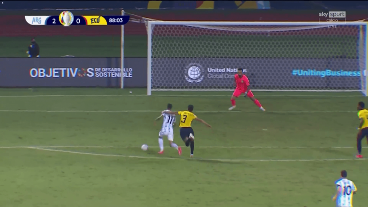 因卡皮耶的贴身防守也带来了糟糕的结局,最能体现这一点的例子,就是在上述对阵阿根廷的美洲杯1/4决赛中,领到的那张红牌。