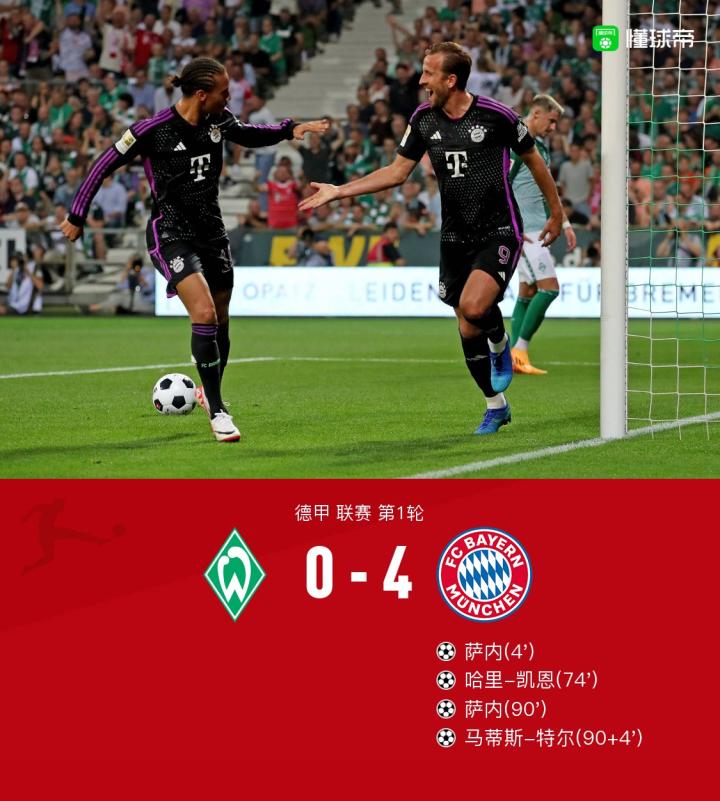 【剑南春|拜仁4-0不莱梅,凯恩德甲首秀传射建功,萨内双响】