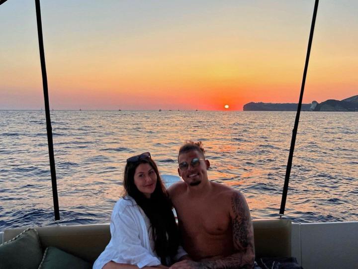 一起看落日,女友晒与卡尔温-菲利普斯合照。