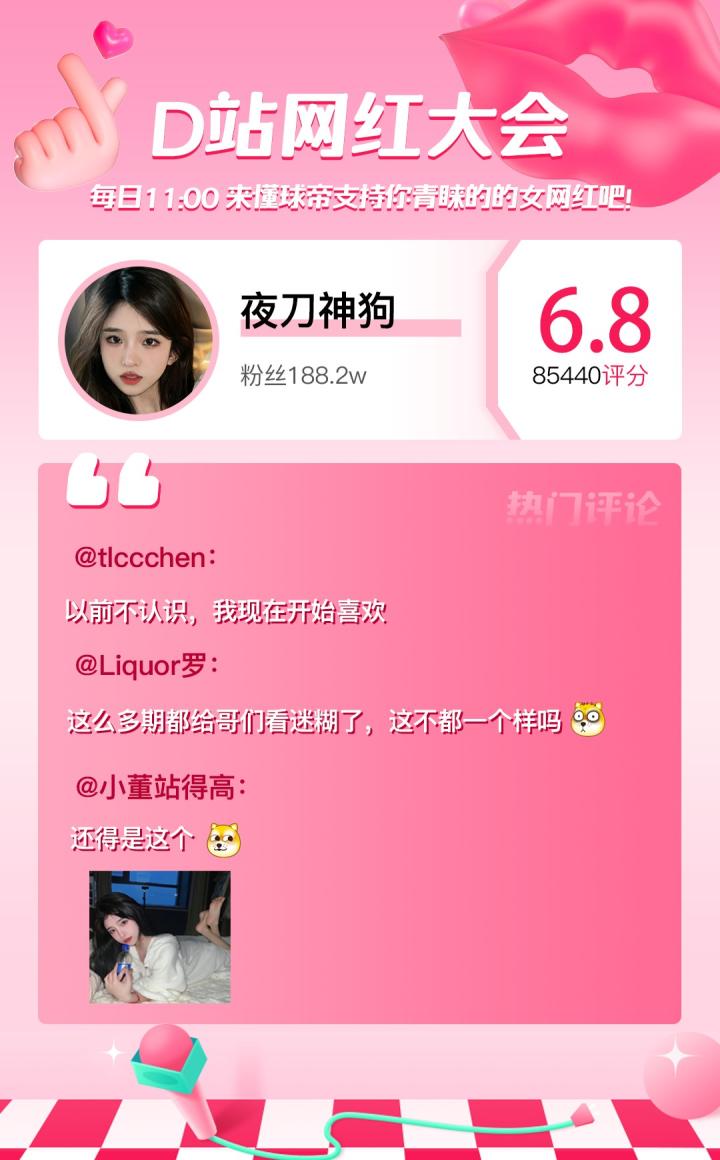 第三十八期女网红【夜刀神狗】最终评分:6.8。