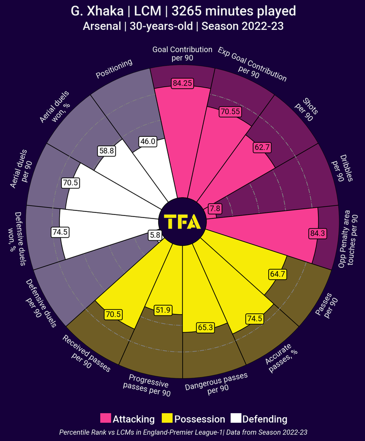 扎卡在德甲和英超的顶级球队磨练了自己的技术,为勒沃库森的中场带来了丰富的经验和领导力。他的身体素质和不懈的跑动使他在防守和进攻阶段都是一笔重要的财富。