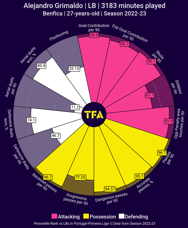 边翼卫位置充满了进攻能力和战术多样性。在左路,格里马尔多展示了他作为一名内切型边翼卫的进攻能力,再加上他的防守能力、犀利的跑动和危险的传球。在右路,快速且技术高超的弗林蓬提供了宽度和爆发力,能够给对手的防守造成了严重破坏。