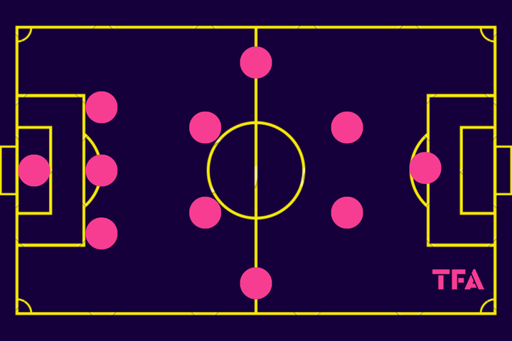 自从执教勒沃库森以来,哈维·阿隆索明显倾向于3-4-3(或3-4-2-1)阵型,他认为这种阵形能在紧凑性和覆盖范围之间取得理想的平衡。许多教练会尝试各种阵型以找到适合他球队的阵型。但阿隆索相信这种阵型能够在比赛的不同阶段发挥作用。