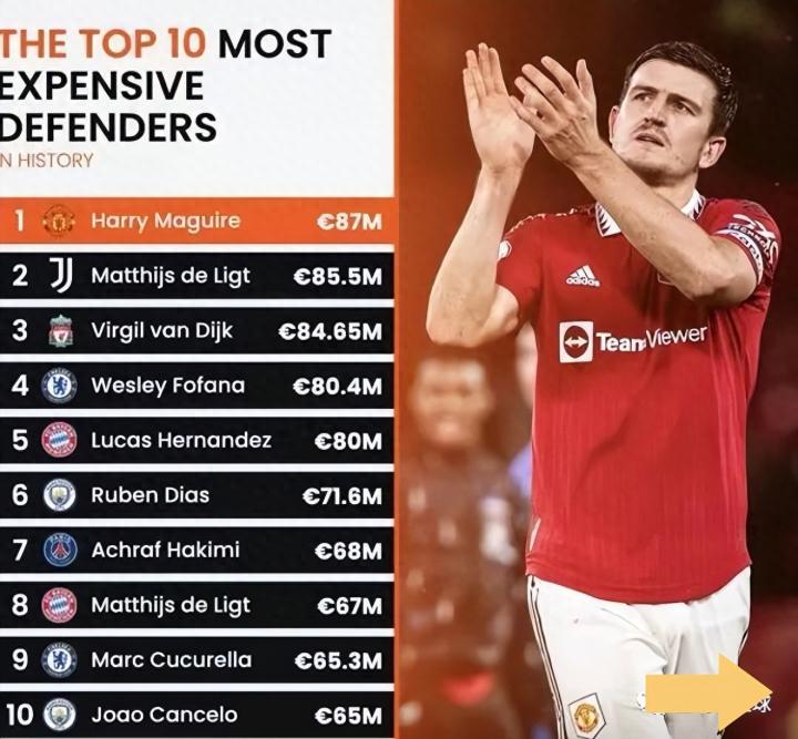 现役世界足坛转会费最高的10大后卫,马奎尔不再是标王