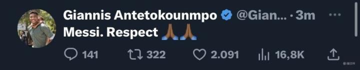 梅西率队夺得北美联杯冠军,字母哥:梅西。尊重