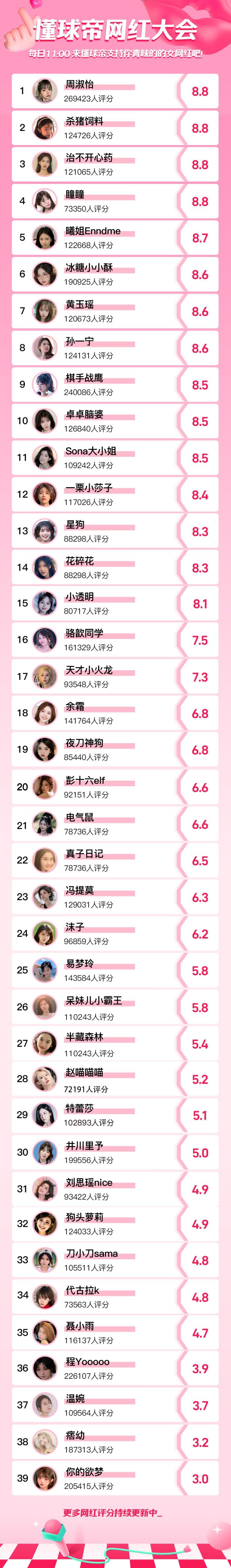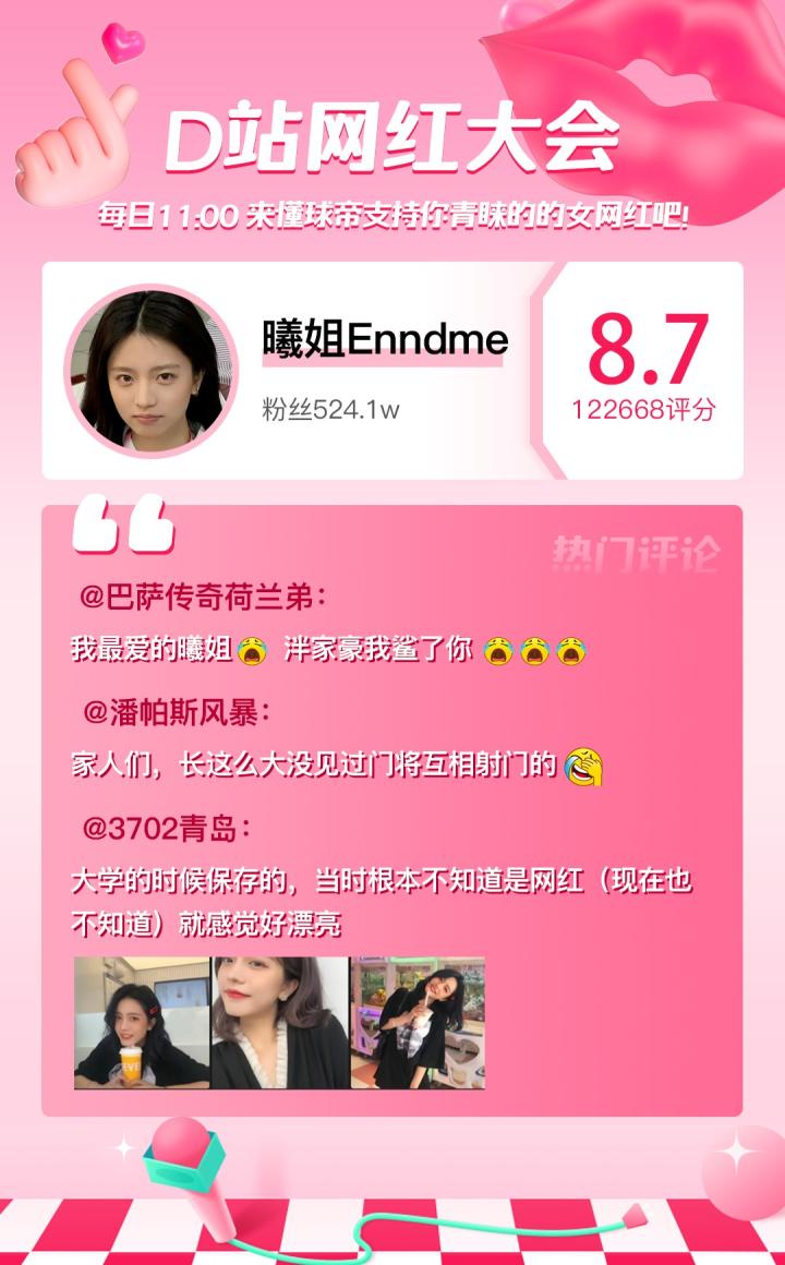 第三十九期女网红【曦姐Enndme】最终评分:8.7。
