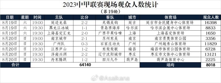 中甲第19轮上座人数:广州、济南、延边破万,场均8018人德鲁飞鱼2023-08-21 00:19中甲联赛第19轮战罢,各队主场上座人数方面,广州队、济南兴洲、延边龙鼎三队主场观众破万,本轮场均观众人数为8018人。图源德转中国区管理员朱艺@Asaikana各场次观众人数延边龙鼎2-2无锡吴钩,16398人黑龙江冰城1-1青岛西海岸,8833人上海嘉定汇龙2-0广西平果哈嘹,1650人南京城市2-1苏州东吴,3356人广州队0-3石家庄功夫,11829人江西庐山1-2东莞莞联,6728人济南兴洲2-2辽宁沈阳城市,13121人丹东腾跃1-2四川九牛,2225人展开更多