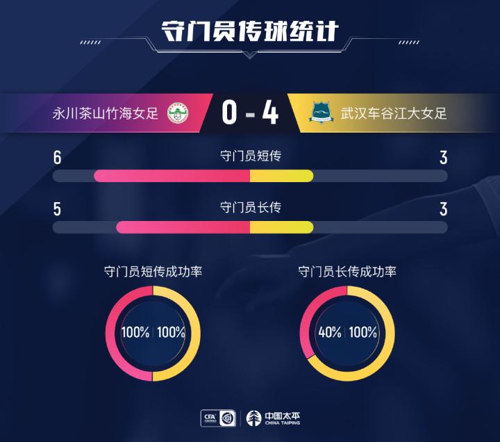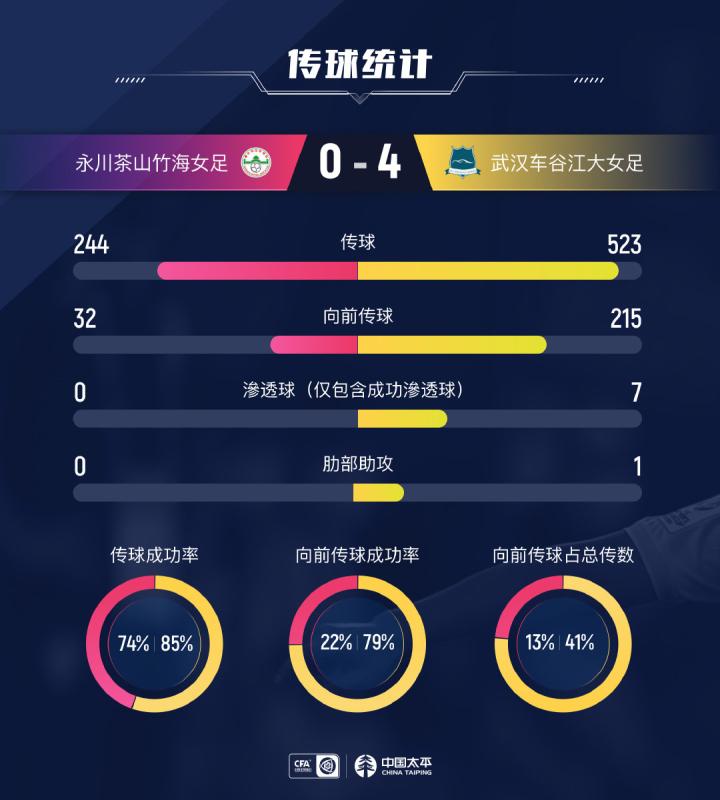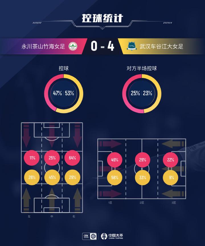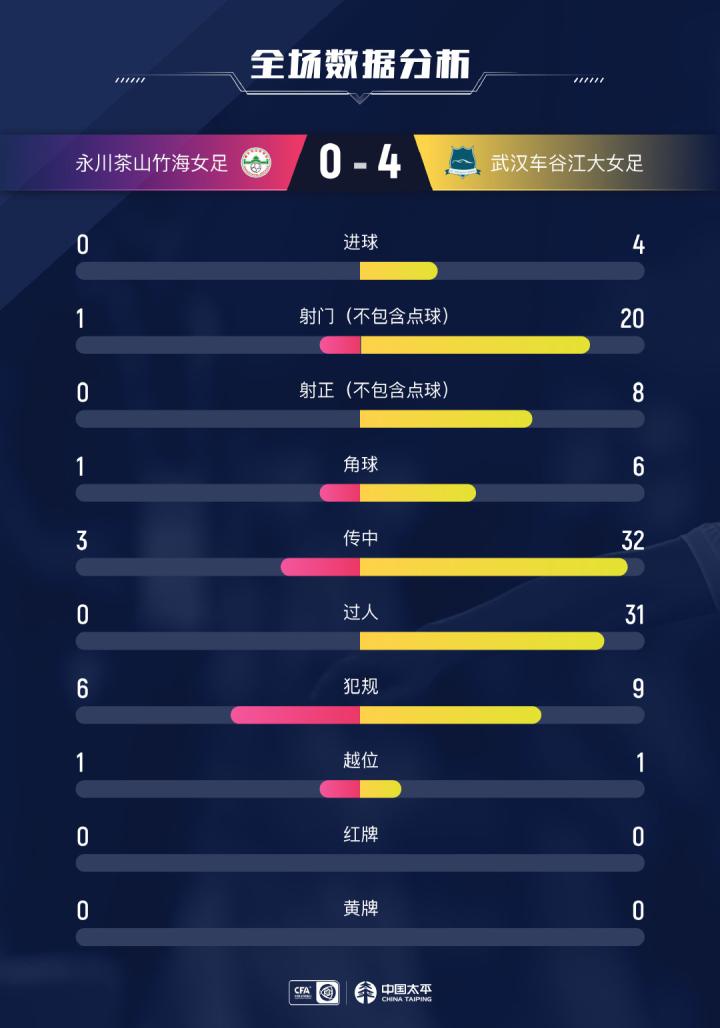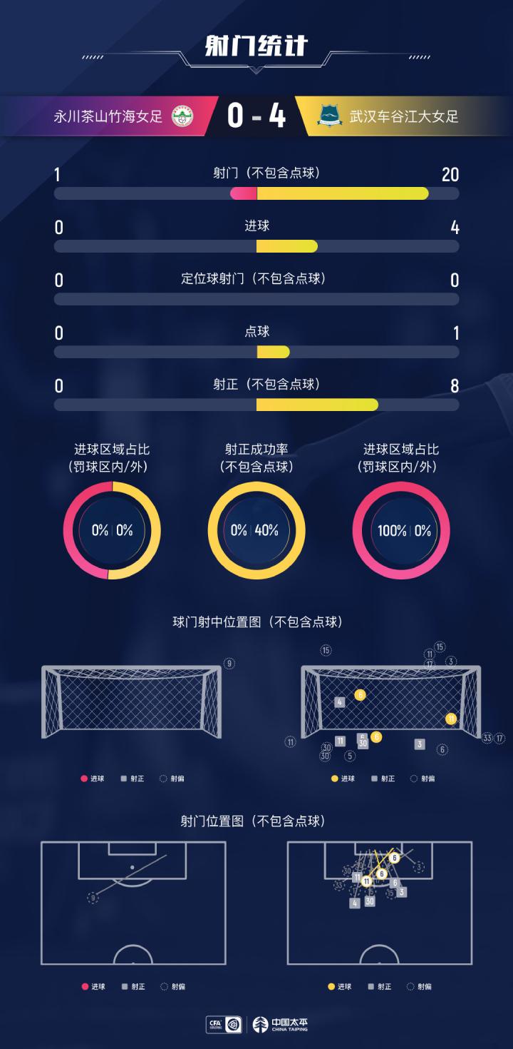 #女超联赛# 第12轮 永川茶山竹海女足 vs 武汉车谷江大女足 0-4 数据图表