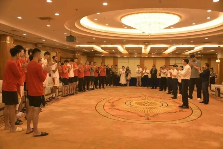 国家体育总局局长高志丹莅临男篮热身赛观赛,并看望全体人员