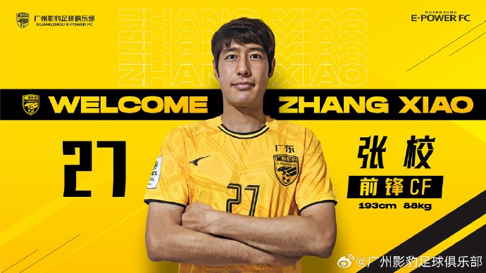 经与球员本人友好协商并达成一致,张校正式加盟广州影豹足球俱乐部。他将身披27号球衣代表广州影豹出战即将开始的中冠全国总决赛。