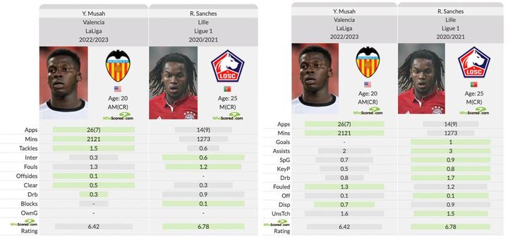 然而,我们可以看到里尔的雷纳托·桑切斯可能与穆萨比较相似,桑切斯也不是一名经常铲球的球员,但他有很多拦截,喜欢从中场带球进攻。