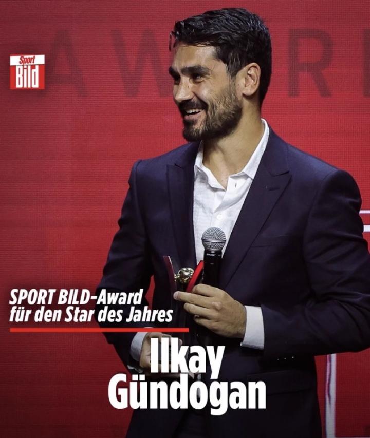 当地时间8月21日,《体育图片报》举行了年度颁奖典礼,京多安获得了《体育图片报》评选的年度之星奖。