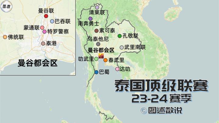 泰国顶级联赛地图。2023-24赛季的泰国顶级联...