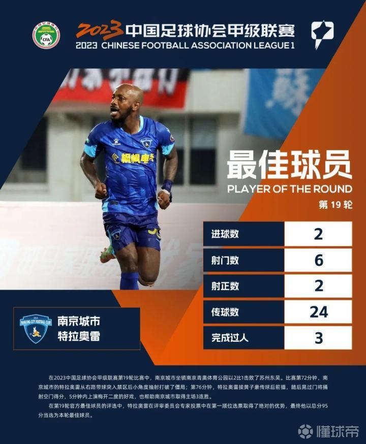 北京时间8月22日,中甲官方公布第19轮最佳球员,南京城市队员阿卜杜-特拉奥雷。