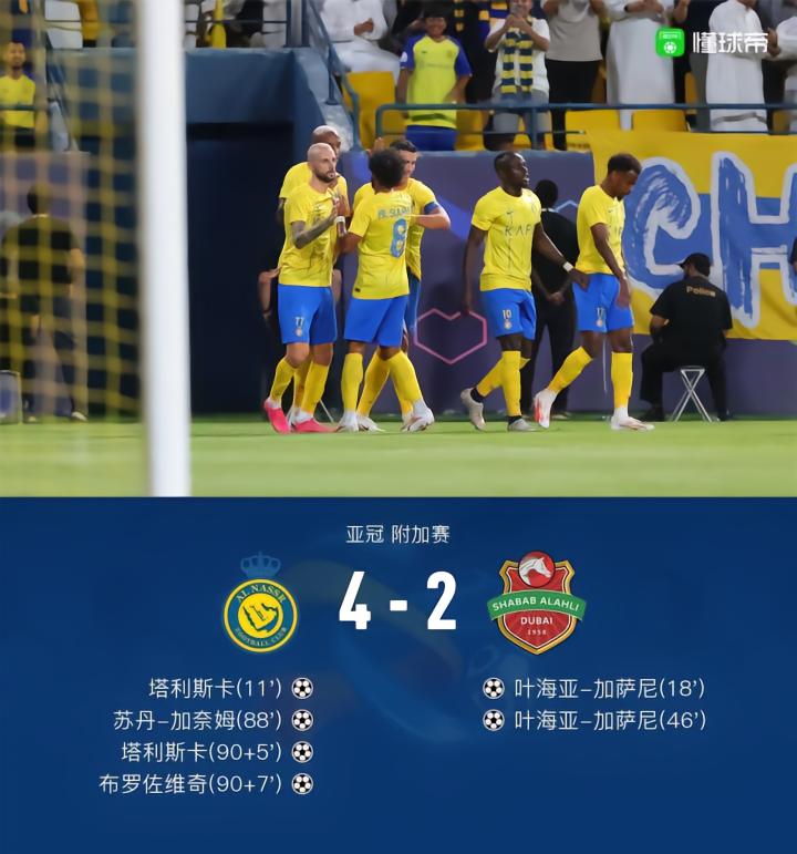 利雅得胜利4-2晋级亚冠正赛,塔利斯卡双响,C罗助攻B罗破门