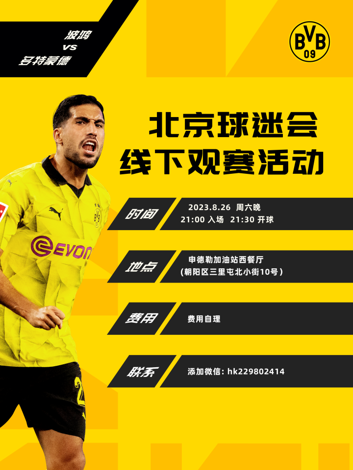 本赛季第一次线下观赛活动来了!北京的横迷们看过来...多特蒙德足球俱乐部 @懂球帝2023-08-23 19:07本赛季第一次线下观赛活动来了!北京的横迷们看过来! 想要参加线下观赛的小伙伴添加微信:hk229802414,即可报名!展开更多