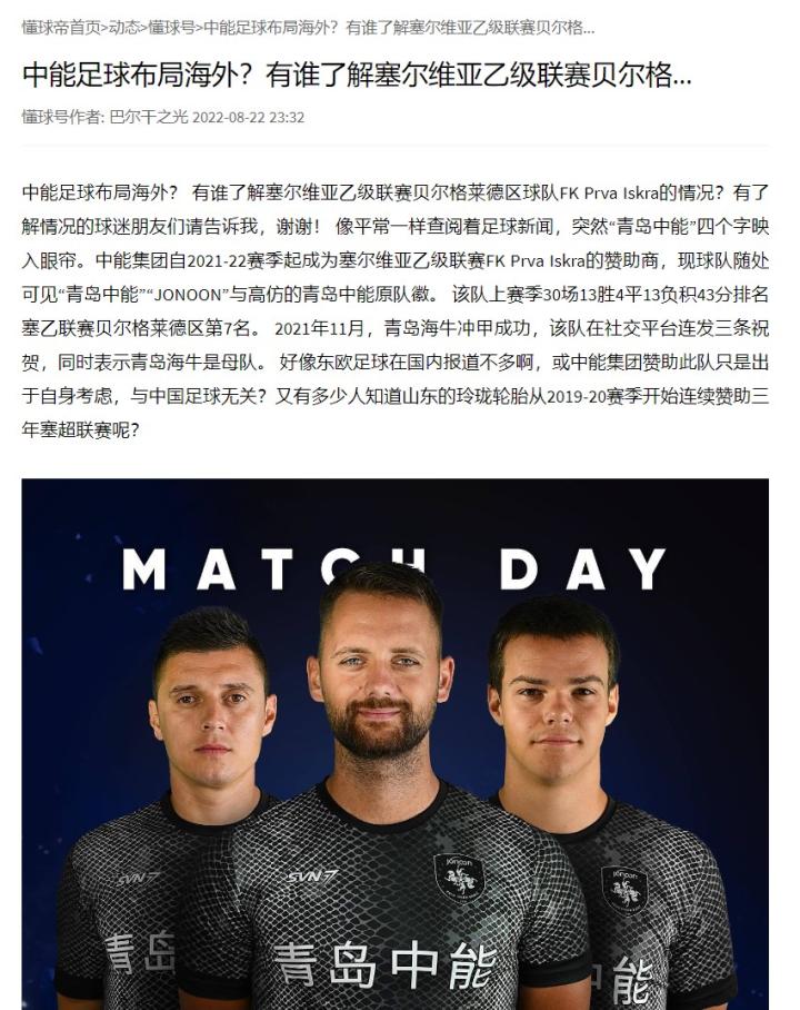 中能集团合作俱乐部 塞尔维亚FK Prva Is...巴尔干之光 @懂球帝2023-08-24 00:05中能集团合作俱乐部 塞尔维亚FK Prva Iskra Jonoon官方中文名称定为“普尔瓦伊斯克拉”,将继续征战塞尔维亚乙级(第三级别)联赛!展开更多