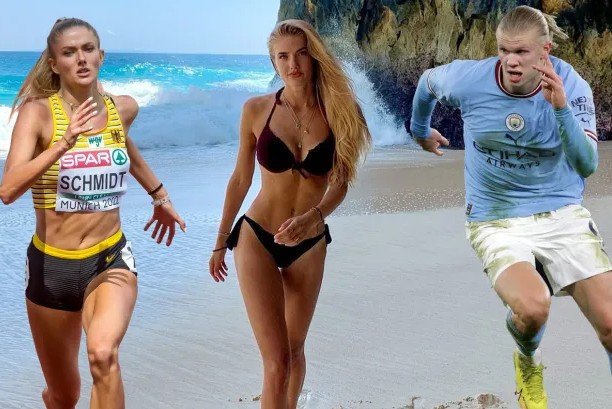 美女vs野兽!“最性感女运动员”施密特向哈兰德发起短跑挑战