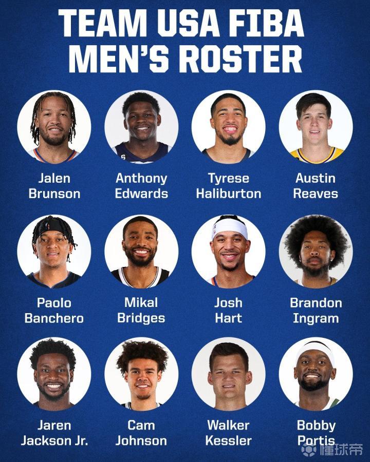 7月2日,约什-哈特成为第12个宣布接受美国男篮征召的球员,至此美国男篮名单全部确定,什么詹杜库卡塔椒,一个都没有。