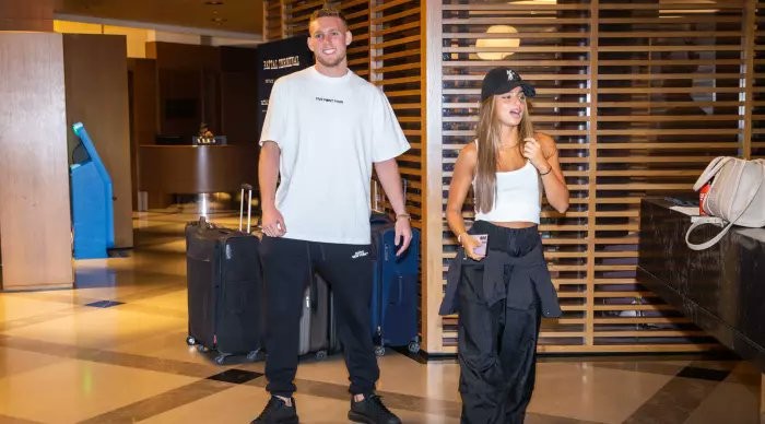 以色列媒体“ONE”发布照片称,特拉维夫马卡比门将丹尼尔-佩雷茨和他的以色列女友、歌手Noa Kirel在当地时间周五上午一起启程前往慕尼黑。