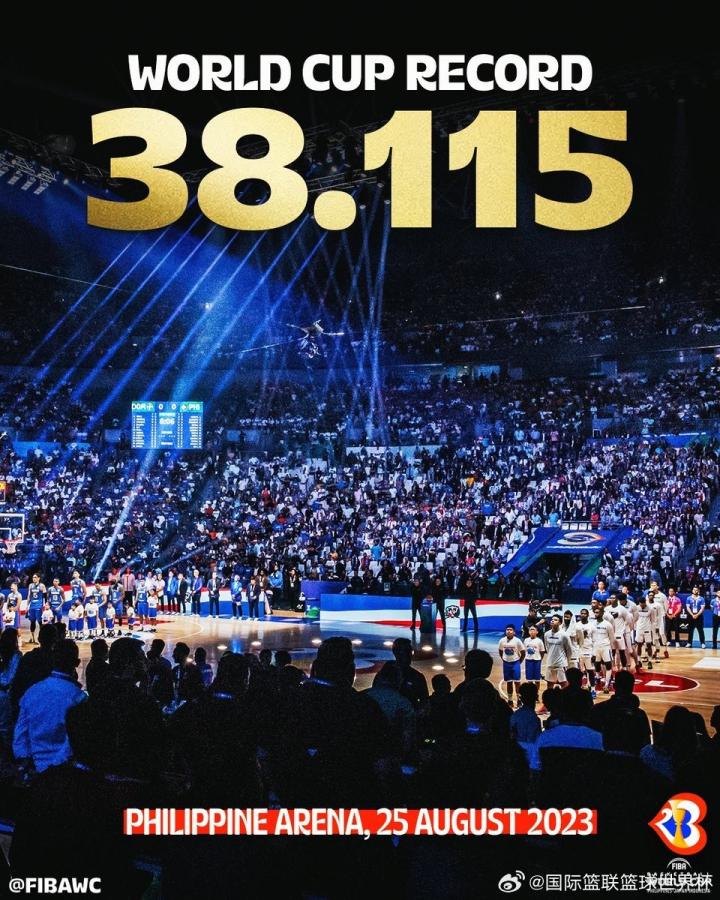 此役,38115名球迷涌入菲律宾体育馆观看比赛,这也创造了男篮世界杯历史上的单场上座纪录,此前的上座纪录为1994年的32616名观众。