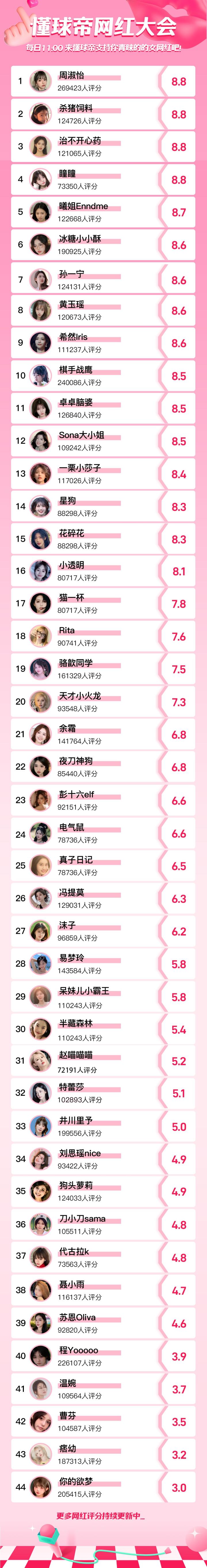 当前我懂老哥对各大网红们的喜爱值如下,谁最让你意外?你最中意的女网红是哪个?欢迎大家在评论区提名,