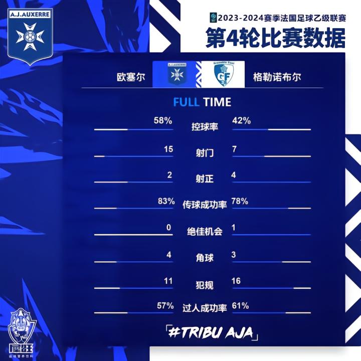 本场比赛与亚眠如出一辙,面对对手的铁桶阵时还是破门乏术。通过数据统计可以看出,欧塞尔是更具优势的一支球队。控球率呈现六四开,射门数更是对手的两倍。球队完成了赛季至今的首场零封,但终结效率低的顽疾还没有解决。