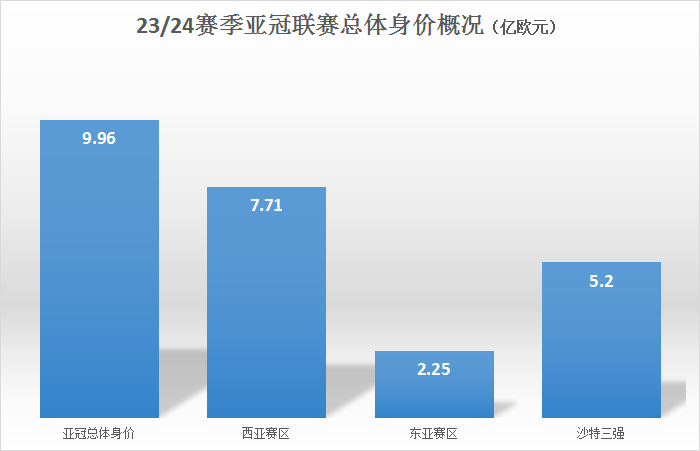 西亚赛区的总体身价高达7.7亿欧元,占到了亚冠总体身价的77.3%。