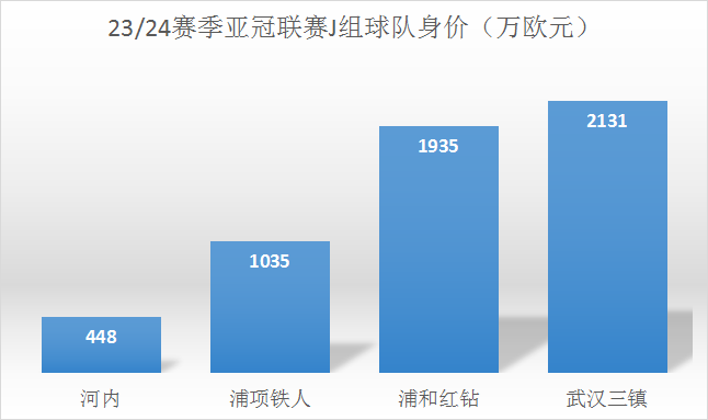东亚赛区共计20支球队中有11支球队的身价超过1000万欧元,但只有中超卫冕冠军武汉三镇的身价超过2000万欧元。