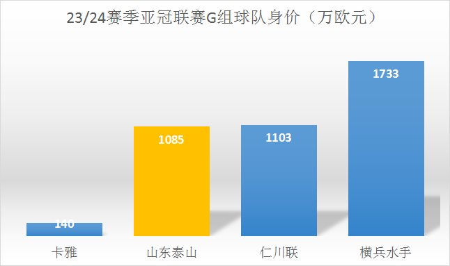 山东泰山在本组的身价落后于横滨水手和仁川联,位列第三。横滨水手有望在本赛季完成联赛两连冠,作为上赛季的日职联卫冕冠军和本赛季联赛领头羊,横滨水手无疑是近两年来日本国内最好的球队之一。