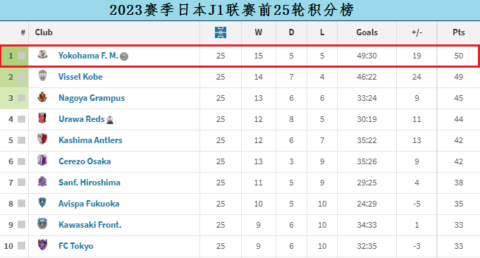 横滨水手在本赛季联赛中表现出强大的攻击力,球队在联赛前25轮已经打进49个进球,其中巴西前锋洛佩斯有17个联赛进球入账。