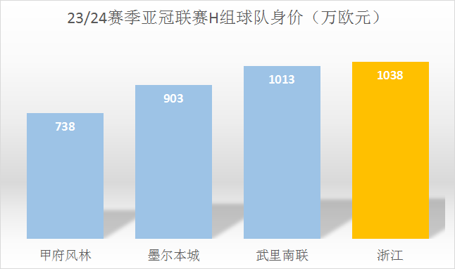 相比于另外两支中超球队所在小组,浙江队所在小组中的四支球队差距并不大,泰国联赛冠军武里南联和浙江在身价上略微占优,而在上赛季澳超常规赛排名第一的墨尔本城和上赛季日本国内杯赛冠军的甲府风林的身价都超过了700万欧元。