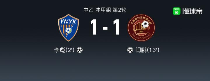 云南玉昆1-1大连智行,李彪,闫鹏破门