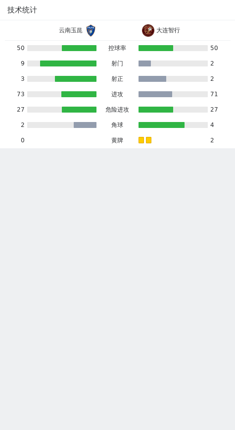 北京时间8月27日中乙 冲甲组 第2轮,云南玉昆主场对阵大连智行。云南玉昆李彪破门。大连智行闫鹏破门。最终比分1-1。