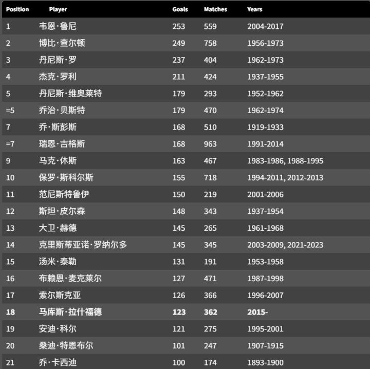 那么,你知道谁是红魔队历史上最高产的射手呢?