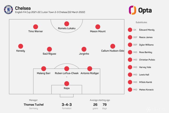 (图)阵容大变脸:切尔西上一次对阵卢顿是2022年3月的足总杯,唯一参加过那场比赛的球员是巴克利,不过他现在是代表卢顿首发。
