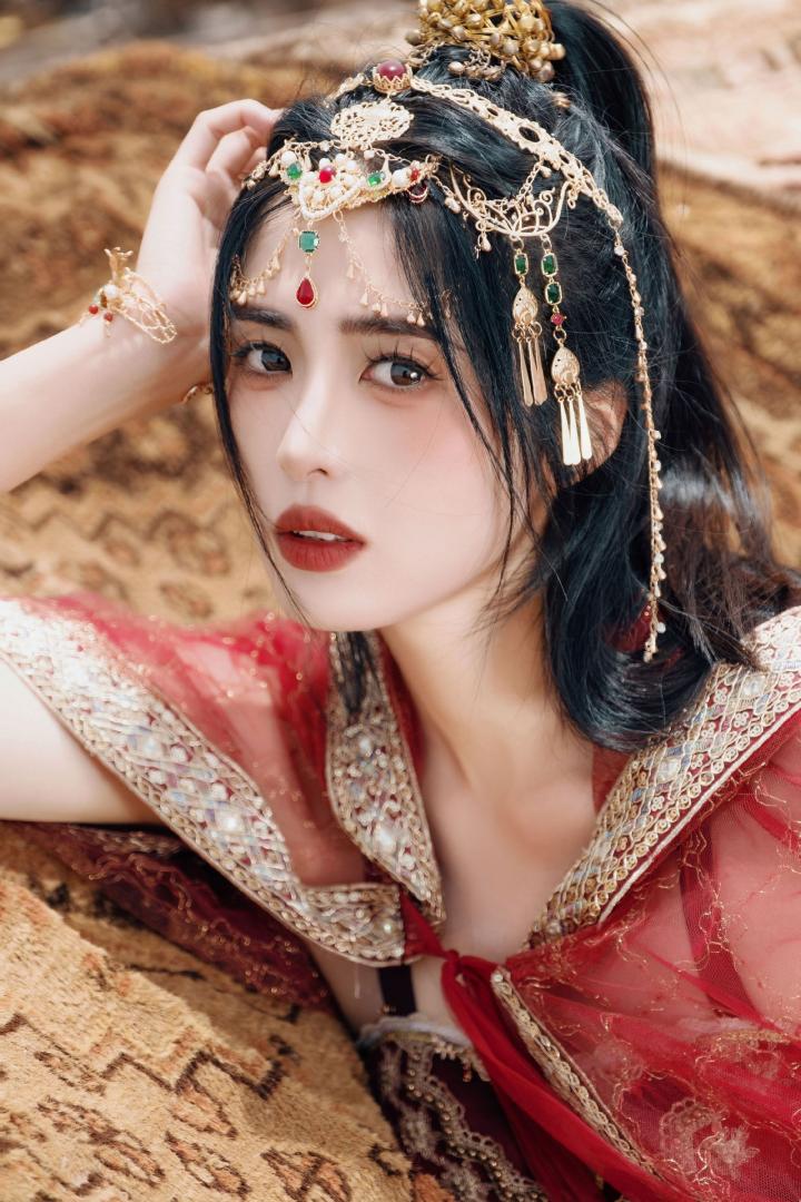 鲜红霓裳倾人城,赵丽娜化身西域美人妖娆多姿