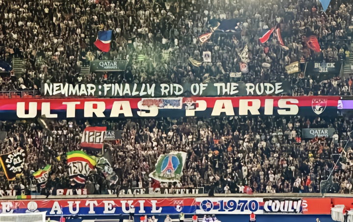 中东游侠巴黎圣日耳曼对阵朗斯的比赛中,大巴黎球迷看台拉起了横幅,上书“我们终于摆脱了内马尔那个粗鄙的家伙”。
