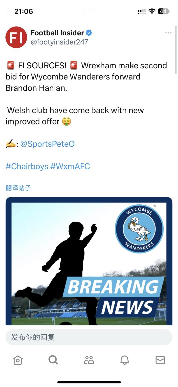 【比赛预告】23/24英格兰联赛杯第二轮 雷克瑟姆 VS 布拉德福德 跑马厅球场 2023/8/30 2:45 (北京时间) 周二晚场的饮料杯,预计雷克瑟姆会有一定程度的轮换。滕尼克利夫、海登可能复出,爱尔兰门将麦克尼古拉斯可能迎来首秀。 雷克瑟姆主帅帕金森曾执教布拉德福德近五年,率队杀入过联赛杯决赛,了不起的壮举。 布拉德福德主帅、前曼联、威尔士名宿马克休斯出生在雷克瑟姆,他也一直心系家乡,在帕金森到来前也曾与雷克瑟姆传出绯闻。(不过还好没来,打法太英式了) 顺便插播一条转会传闻,传雷克瑟姆第二次对韦康比前锋布兰登汉兰报价。 汉兰现年26岁,身高182,上赛季在韦康比英甲36场3球一助,巅峰赛季是18/19在吉灵厄姆的9球3助。 微博:跑马厅球场的红龙