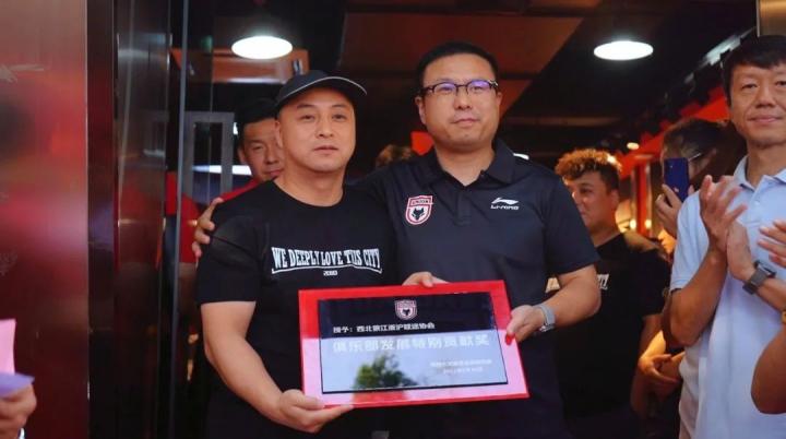 张威为西北狼江浙沪球迷会颁发了俱乐部发展特别贡献奖奖牌。黄勇、丁捷为大巴车捐赠代表:江浙沪球迷协会代表焦先生、两位从长沙驾驶回西安的大巴车司机邵先生、王先生,跟车服务人员李同学、装潢店的老板加先生献上俱乐部新赛季球衣并分别赠送了礼品包。