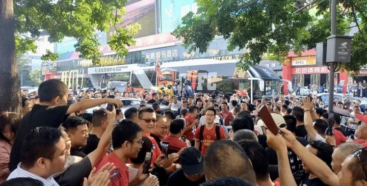 球迷为陕西队捐赠的大巴抵达西安,众多球迷前往接车