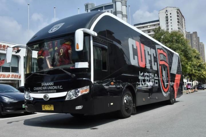 该大巴车已经完成装潢,贴上了陕西长安联合的队徽。28日下午,众多陕西球迷来到陕西省体育场东广场进行接车。