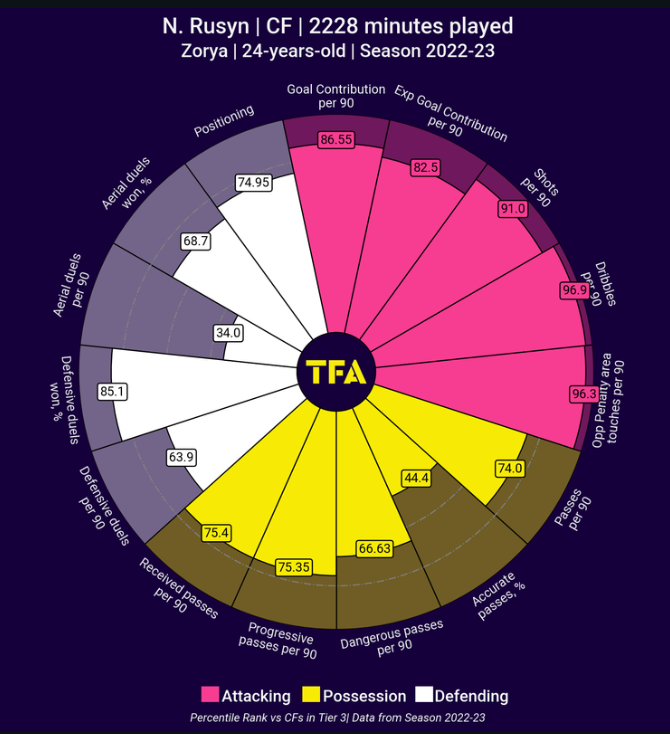 其实从乌克兰市场来讲,这笔交易达成将是血赚的。因为鲁辛拥有成为一名出色前锋的各种特质,比如不错的球商可以提升他的行为决策效果、简洁的盘带动作和敏捷的身手可以让他对抗高中卫而游刃有余,这些特点都不会因为更换联赛而磨灭。
