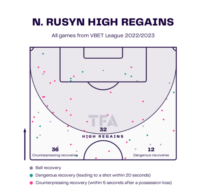 在失去球权后,他拥有迅速夺回球权的决心和精力,尤其是在进攻三区,他希望再次夺回球权以完成进攻,在这里他有大量夺回球权。