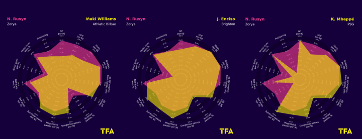 我的个人观感认为他是类似于杰米·瓦尔迪,而专业的分级机构则认为他与威廉姆斯、恩西索和姆巴佩都有至少90%的匹配度。