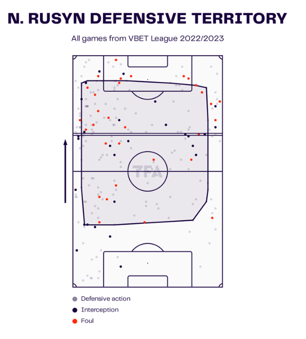 同时他善于高位逼抢,当他的球队提高逼抢线时,他会表现出很强的侵略性,在防守对抗上不落下风。