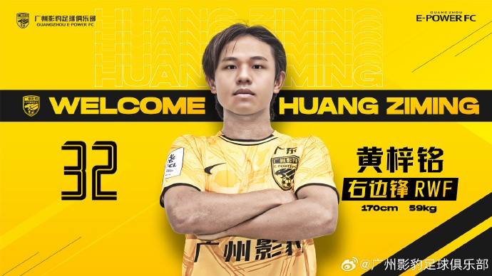 经与球员本人友好协商并达成一致,黄梓铭正式加盟广州影豹足球俱乐部。他将身披32号战袍代表广州影豹出战即将开始的中冠全国总决赛。